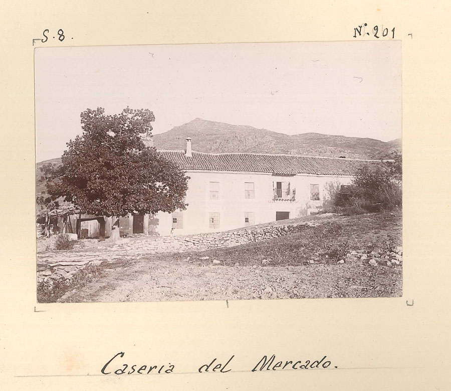 La serie se completa con la imagen de la Casería de Mercado, que sitúa el foco fuera del núcleo urbano y recuerda la relación del pueblo con esta gran explotación agrícola de su entorno. De este modo, el paisaje se presenta como estructura que explica la forma y la economía del lugar.